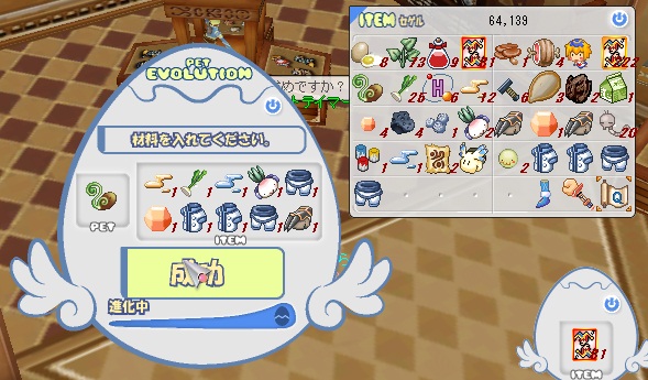 進化素材は無難な物を用意。